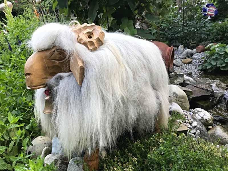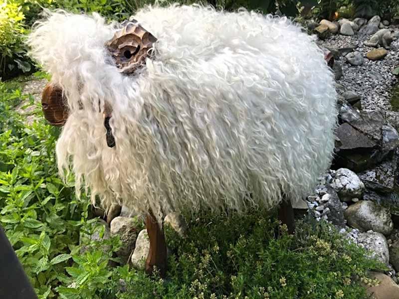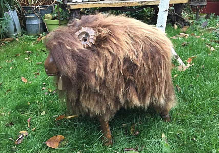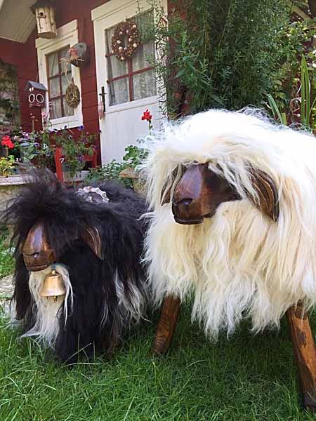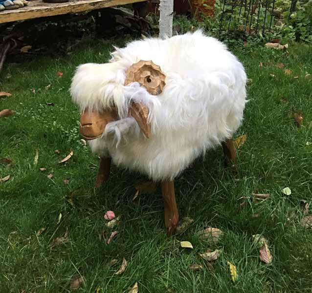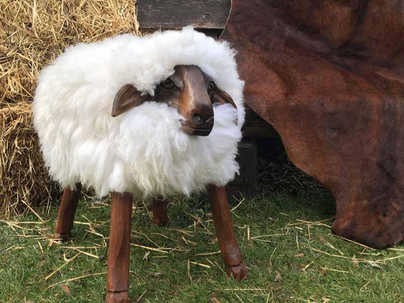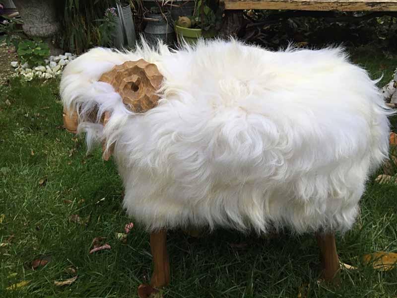 100 % Holz mit echtem Schaffell bzw. Islandschaffell überzogen und gepolstert.